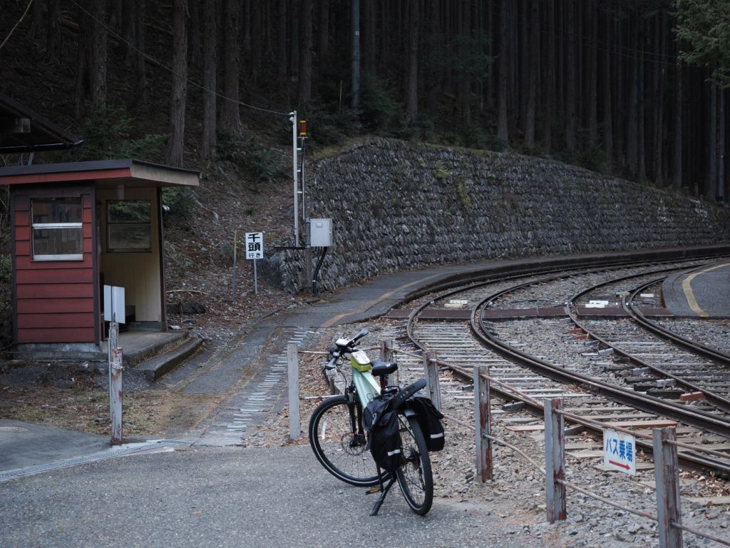 車に eBike を積んで浜松からまずは島田の方に出て、そこから大井川鐵道に沿って北上して千頭駅を目指します。道中も古くて雰囲気のある駅舎や、お茶畑、そして大井川にかかる吊り橋など見どころが多くて、寄り道しようとしたらいくら時間があっても足りない沿線。ここ塩郷の吊り橋は SLが真下を通ることでも有名な場所だけど、残念ながらまだ台風被害から復旧が行われておらず静かな雰囲気。とはいえ、幅も広い大井川にかかる大きな吊り橋は迫力満点です。