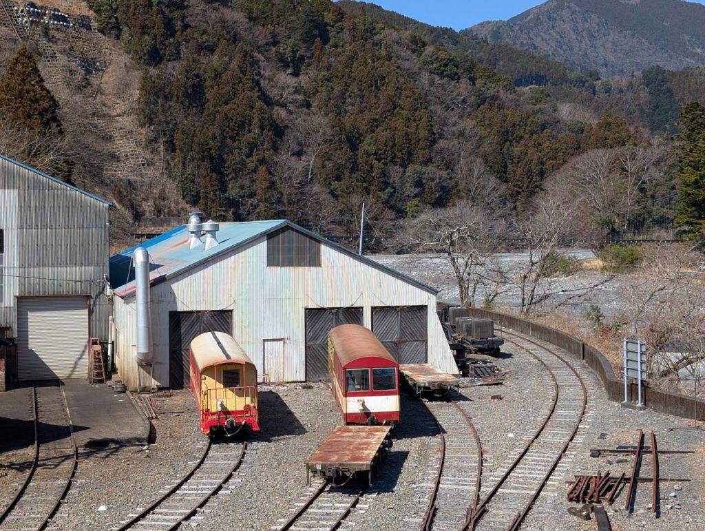 大井川鐵道の井川線の車両は本当に小さくて、また赤く塗装されているせいもあってか、遠くから見るとおもちゃみたいに見えてちょっと面白いです。