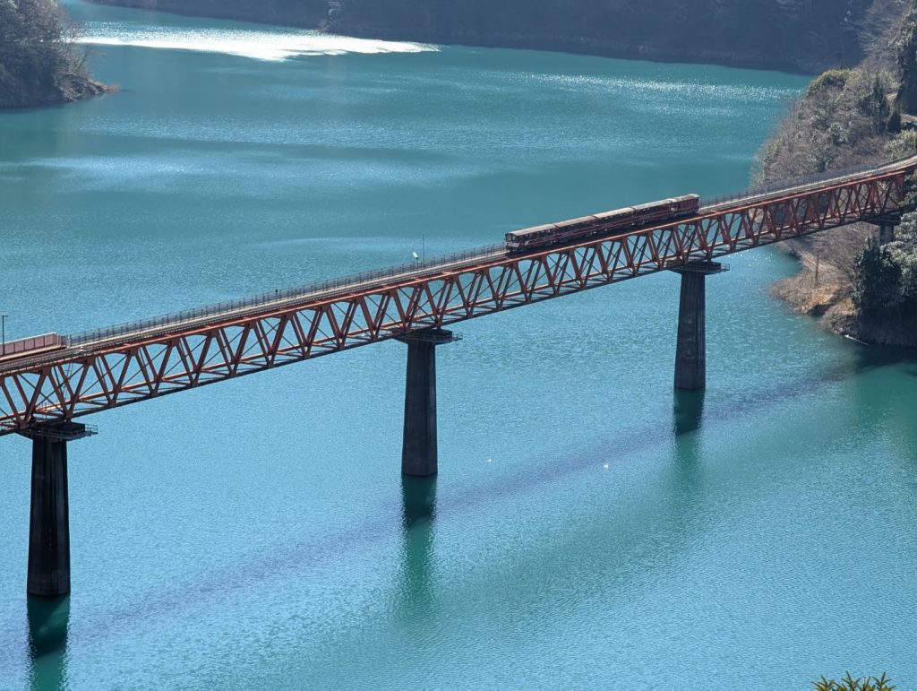 長島ダムも何度も通り過ぎている場所ではあるのですが、ここに噴水があるって気にもしてなかったかも。ダムの規模感と結構な高さまで水を噴き上げる噴水に圧倒されます。また、結構な急勾配をアプト式の機関車で押して進む様子も、実際に列車に乗っているのと外から見るのとではだいぶ印象が違ったりもします。