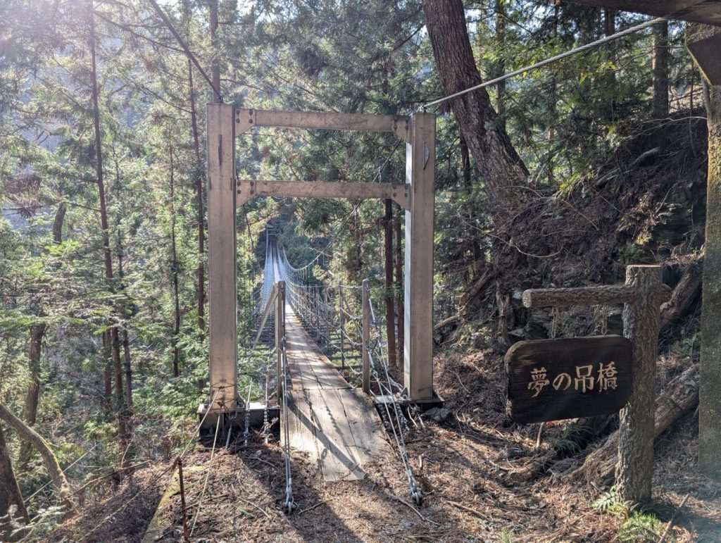 この遊歩道をずっと歩いていった先には、寸又峡温泉の有名な夢の吊り橋とは別の、もう一つの「夢の吊り橋」がかかっています。寸又峡温泉のそれが圧倒的に有名だと思うのですが、なぜ同じ名前なんだろうという気もします。