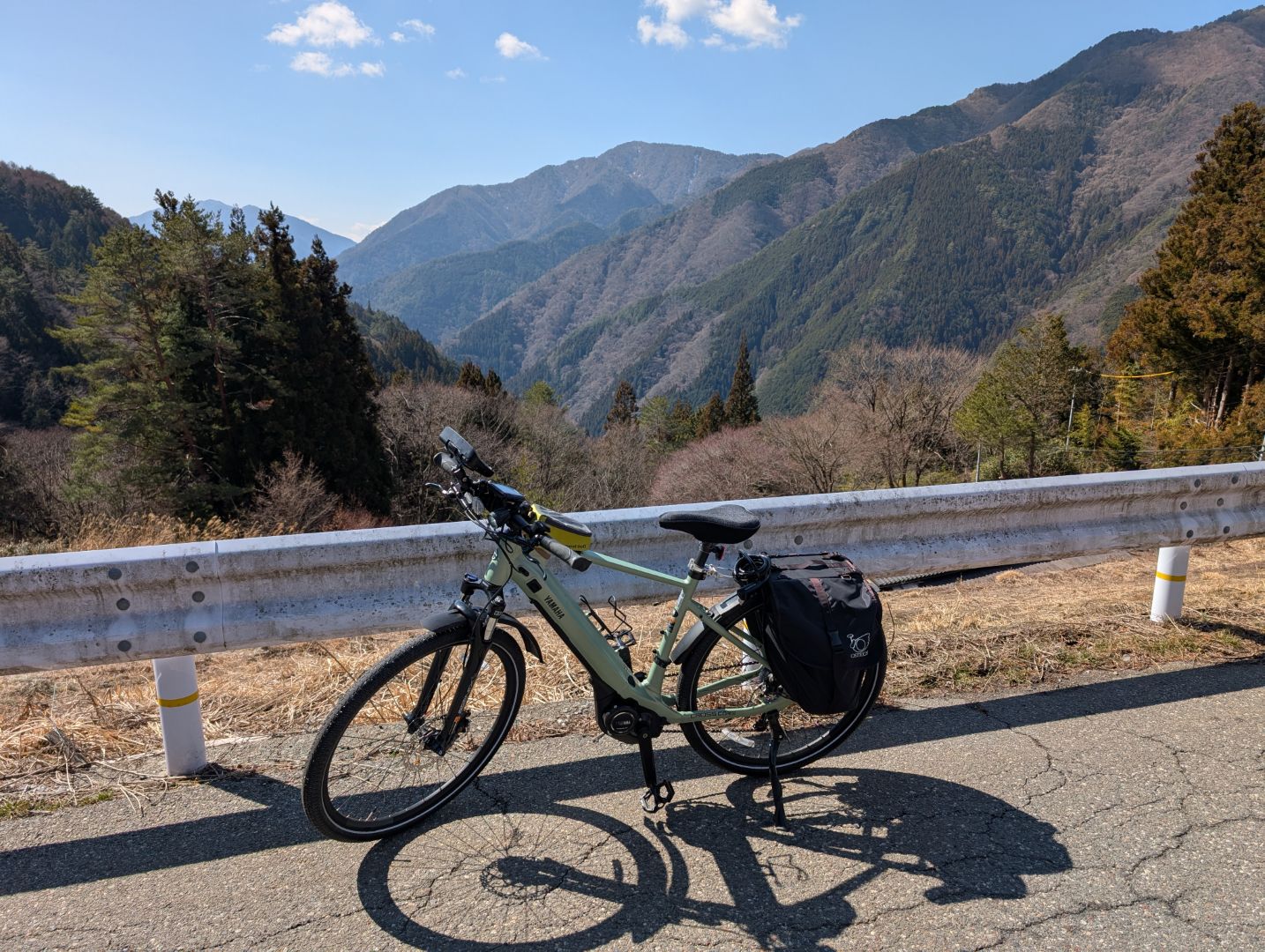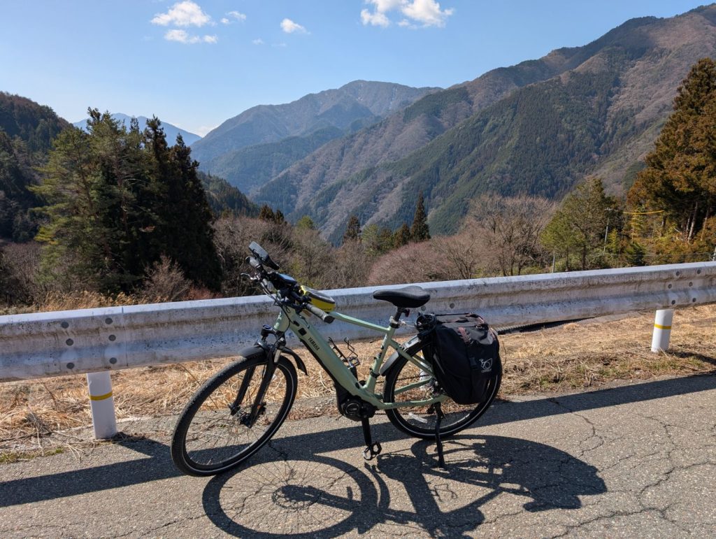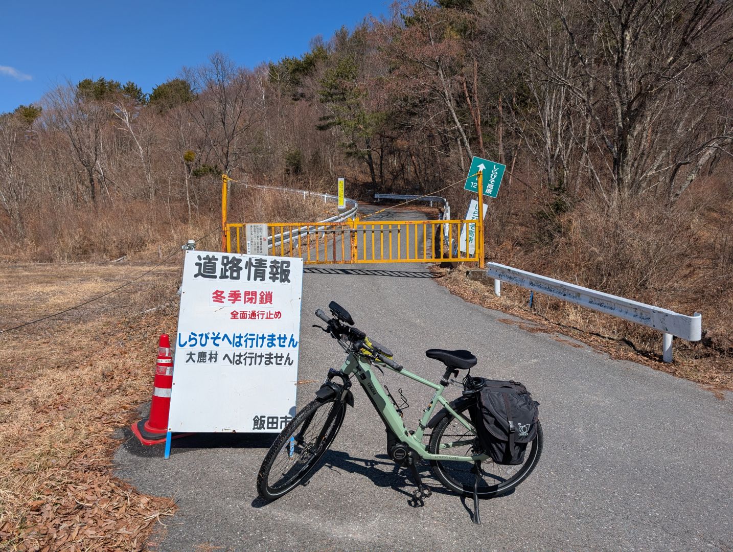 南アルプス光岳への登山口の一つ、易老渡がどこにあるのかと地図で調べていた時に偶然見つけたのが下栗の里。調べてみると日本のチロルと表現される絶景地で、山の斜面に張り付くように小さな里があるその様子に、いつか行ってみたいと思っていました。先日のサイクリングで eBike を車に載せられることがわかったので、まだ雪に覆われる南アルプスの絶景と一緒に楽しもうと道の駅遠山郷から登ってみることにしました。