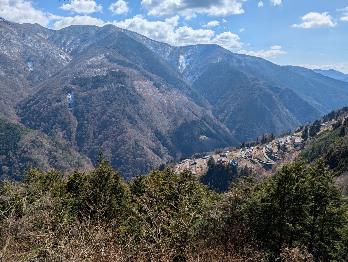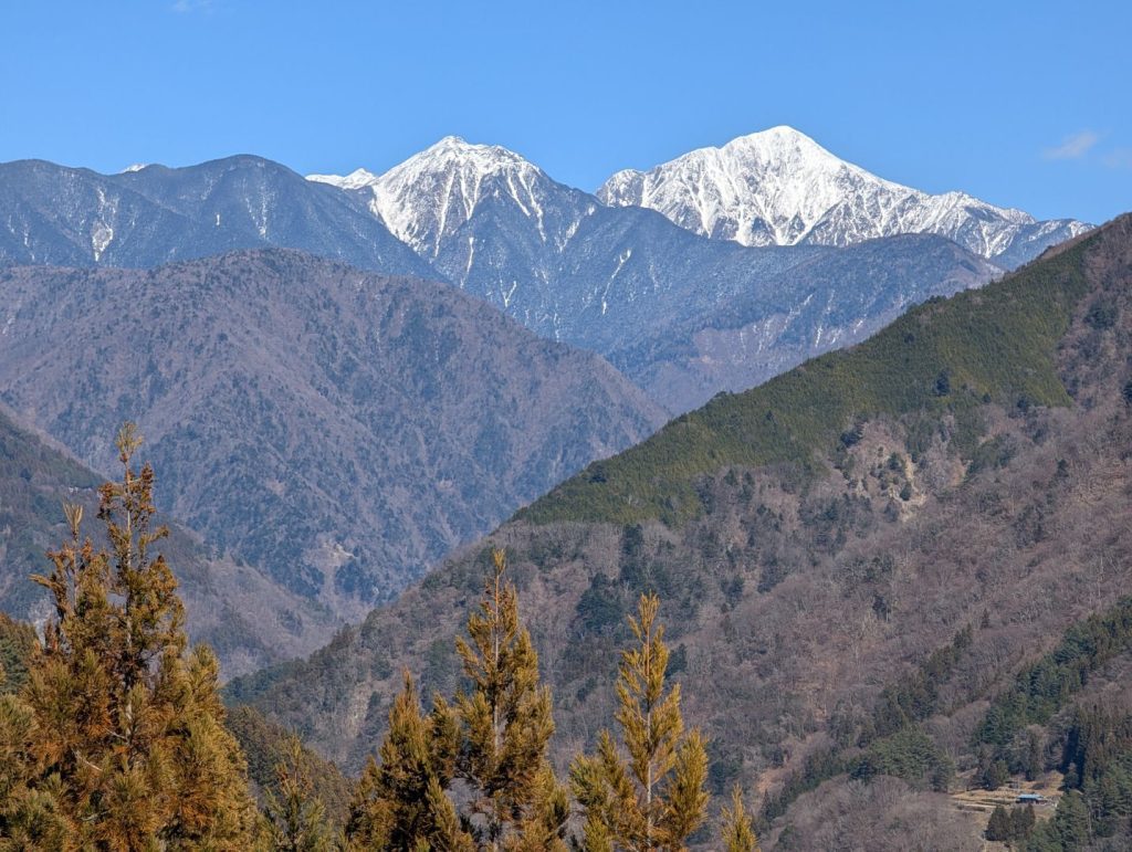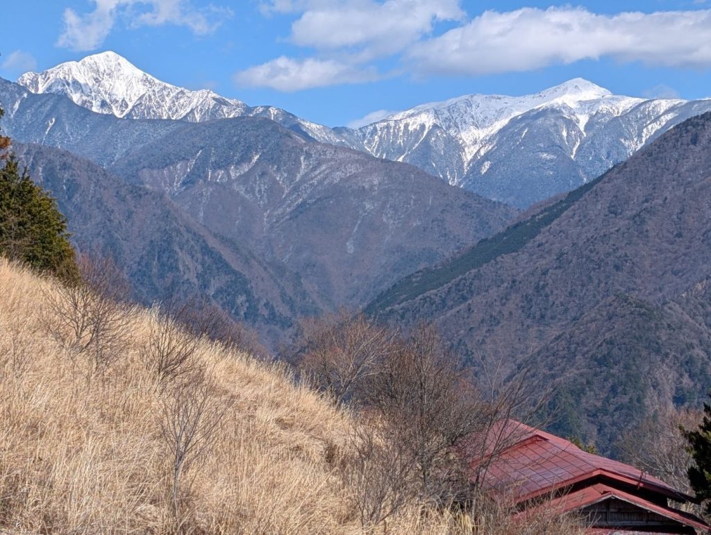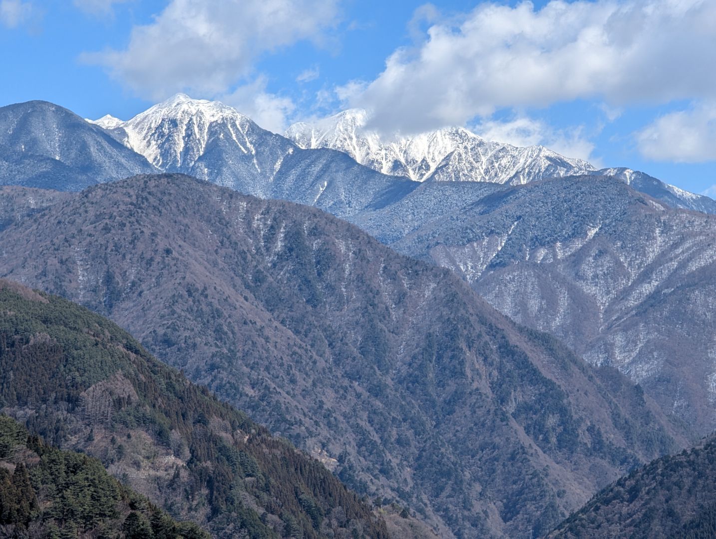 おおぎびら展望台から下栗の里展望台まで降りてくると、雲が晴れて上河内岳や兎岳が神々しいその姿を見せてくれていました。南アルプスはいつか縦走してみたいですが、雪が無かったとしても中々ハードル高そう。