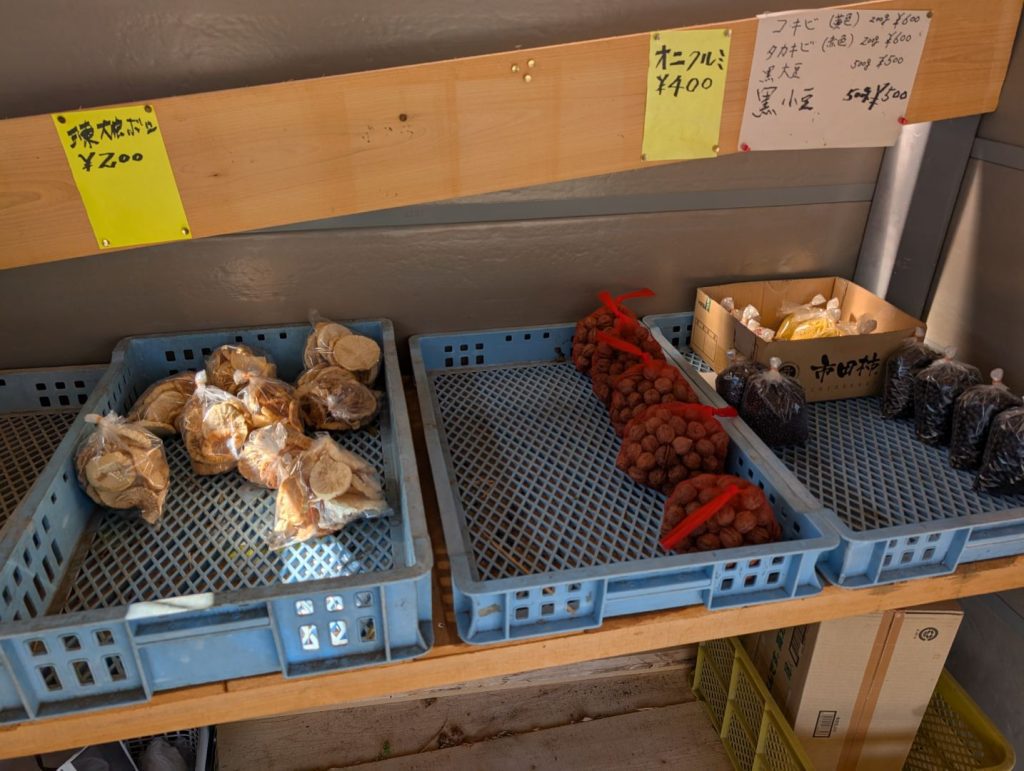 こういう場所の無人販売所って美味しそうなものが色々と売ってて、思わず立ち止まってしまいます。切り干し大根じゃなく、「大根干し」というのがかなり気になったのですが、それ以上にちょうど黒豆食べたいなと思っていたので、黒豆だけ仕入れました笑。
