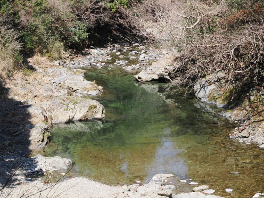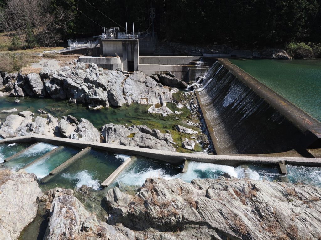 櫛田川上流部の香肌峡は透明度の高いエメラルドグリーンの水の流れがとても美しく、途中にあった階段状の堰提もいい感じでした。