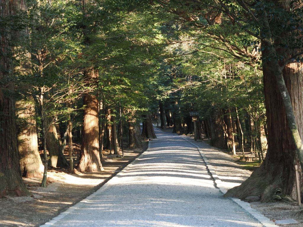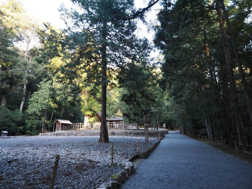 宮川・香肌峡のサイクリングを終えて、夕方に立ち寄ったのが皇大神宮別宮の瀧原宮。伊勢神宮の域外の別宮がいくつかある中の一つで、元伊勢と伝えられる「遙宮(とおのみや)」として崇敬を集める場所なのだとか。この日は少し遅い時間だったこともあって、誰一人として参拝者がいませんでした。厳かな雰囲気の中で参拝できたのはとても良かったのですが、背筋が少しぞくっとするような感じもあって、正直あまり長くいることができませんでした。