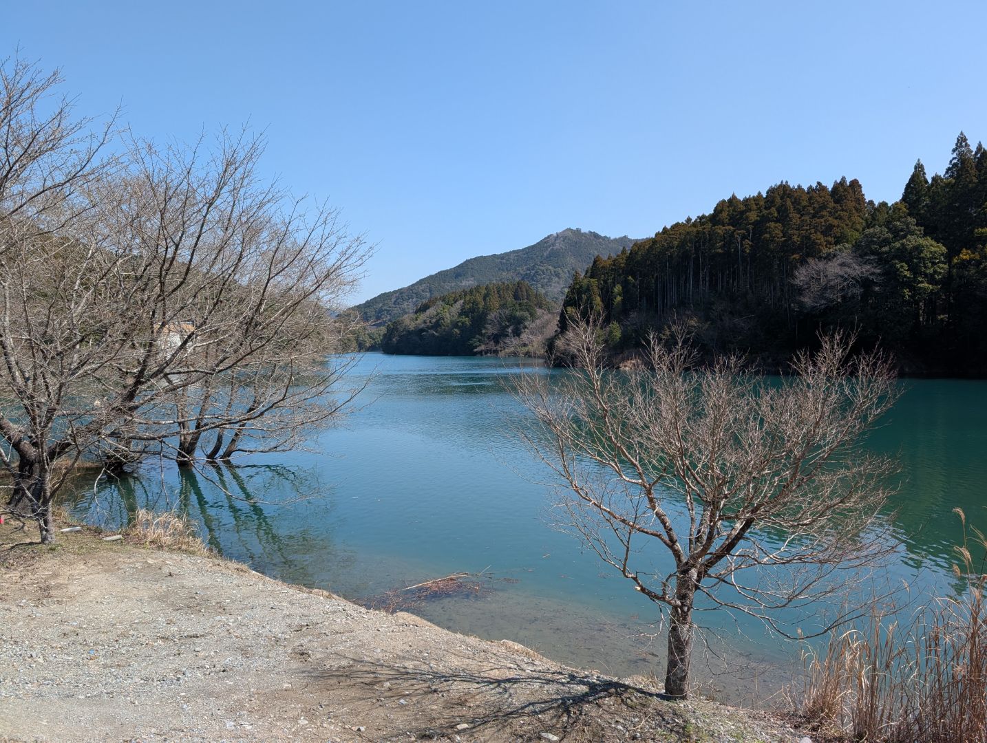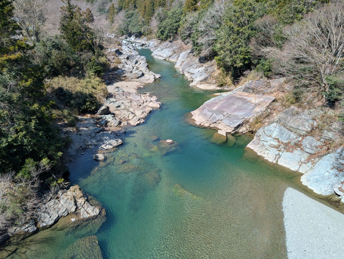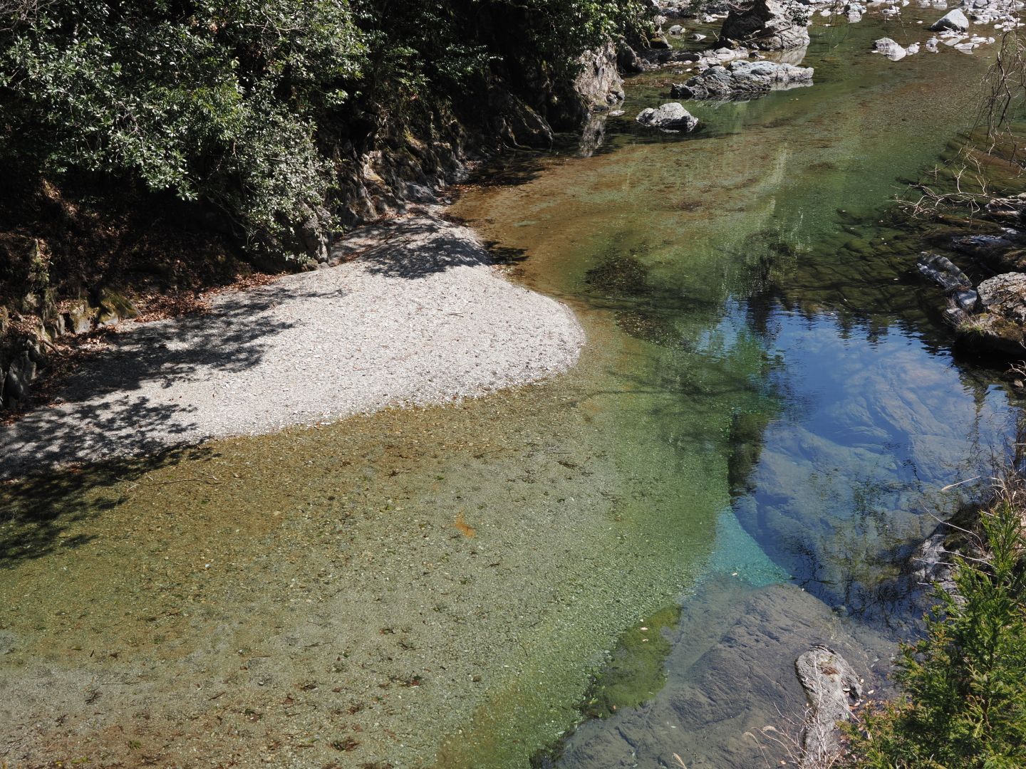 櫛田川上流部の香肌峡は透明度の高いエメラルドグリーンの水の流れがとても美しく、途中にあった階段状の堰提もいい感じでした。