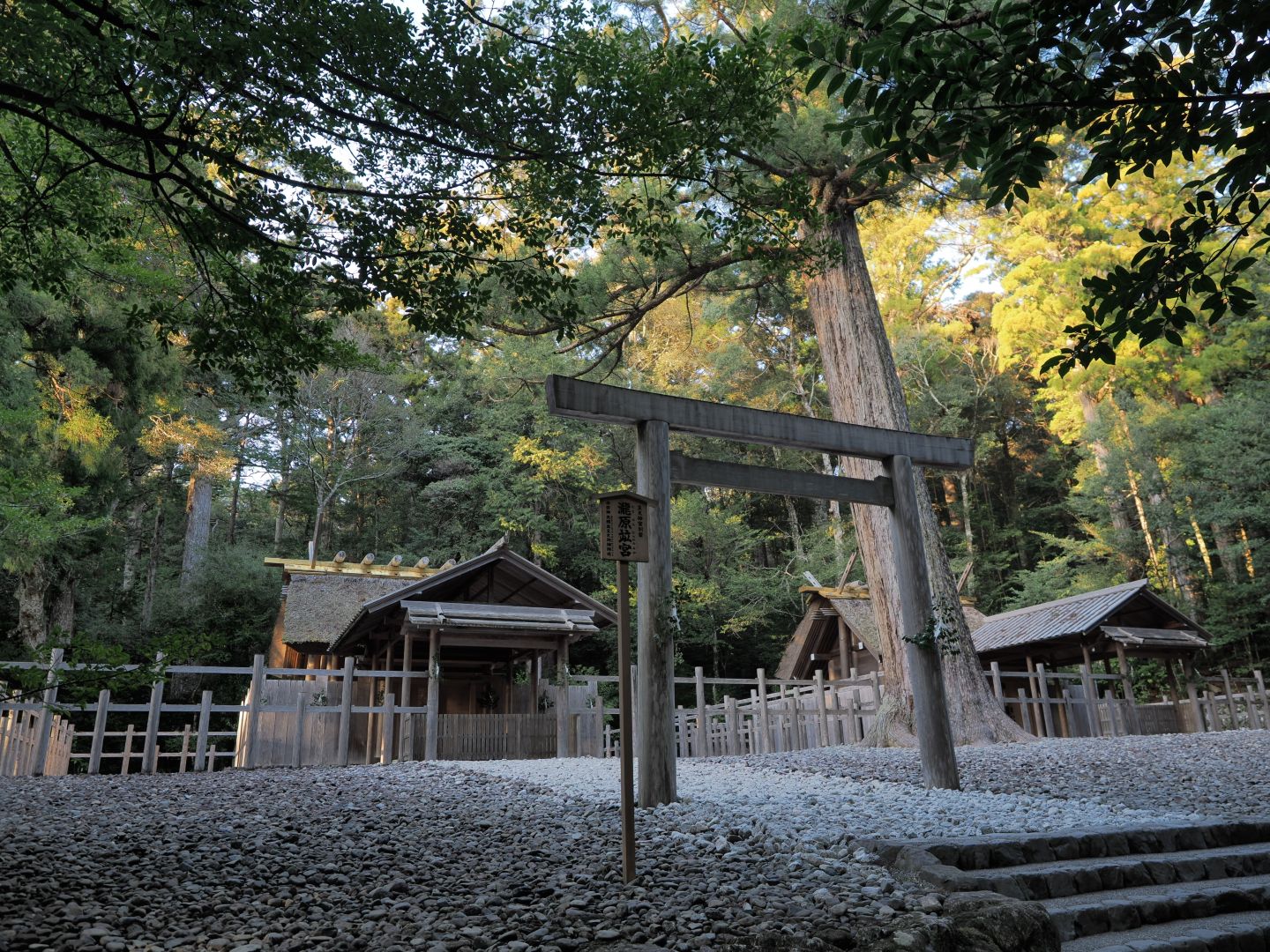 宮川・香肌峡のサイクリングを終えて、夕方に立ち寄ったのが皇大神宮別宮の瀧原宮。伊勢神宮の域外の別宮がいくつかある中の一つで、元伊勢と伝えられる「遙宮(とおのみや)」として崇敬を集める場所なのだとか。この日は少し遅い時間だったこともあって、誰一人として参拝者がいませんでした。厳かな雰囲気の中で参拝できたのはとても良かったのですが、背筋が少しぞくっとするような感じもあって、正直あまり長くいることができませんでした。