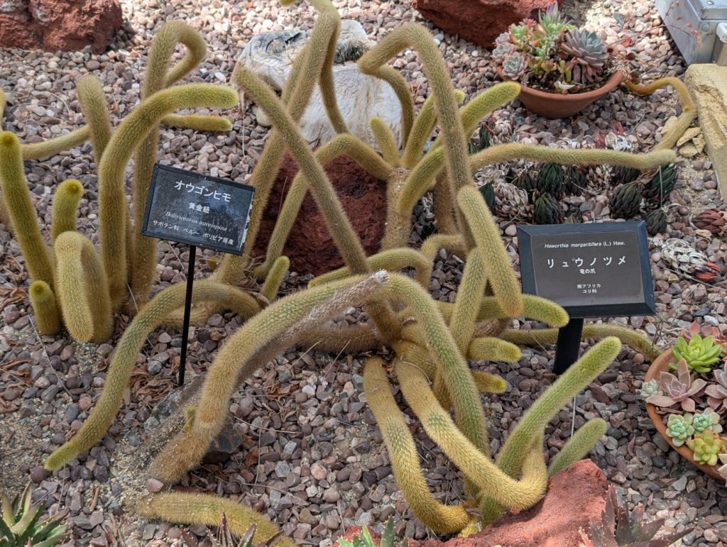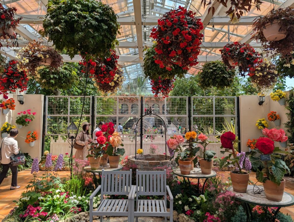 園内の花々の中にはこれまでに見たことが無いような花もちらほら。また、非常にビビッドな色合いに溢れていて、自然のものでは無いような不思議な感じもありました。また、金属のフレームに花や緑を植えこんでいき、花や緑の模様をうまく活かしてモザイク状の巨大な作品を作り出すことをモザイカルチャーというそうなのですが、「森の仲間たち」という作品が飾られていました。かなりの大きさなのでびっくりします。