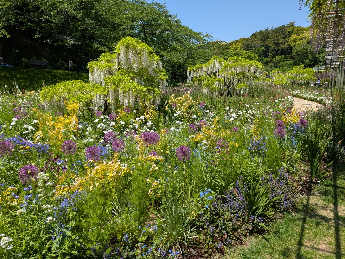 広大な園内には、バラ園や藤棚、温室などがあってどこを歩いても綺麗な花が咲き乱れていました。また、時期が終わってしまっていましたが、桜とチューリップが美しい庭園もあり、その時期に来たらきっと綺麗だろうなと思われるような場所もありました。園内は想像以上に広くて、数時間滞在して色々と歩いて見て回っていたにもかかわらず、後で園内のマップを見てみたら、それでも園内の半分くらいしか見て回っていないことがわかるくらいでした。また、植物園の北側は浜松市の動物園と繋がっていて、一日かけても全部を見るのが難しいくらいじゃないかなと思います。