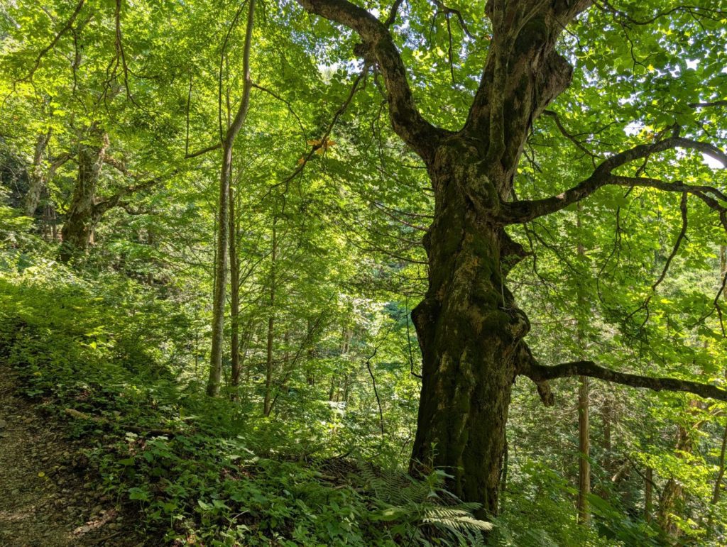 写真では大きさが伝わりにくいですが、鳥居峠にはかなり大きなトチノキが何本もあって、この近辺だけここまでの森とは雰囲気が異なっていました。自分にはトチノキは神社とか人里にあるというイメージがあって、こういう自然の山で群生しているというのは初めて見た気がします。