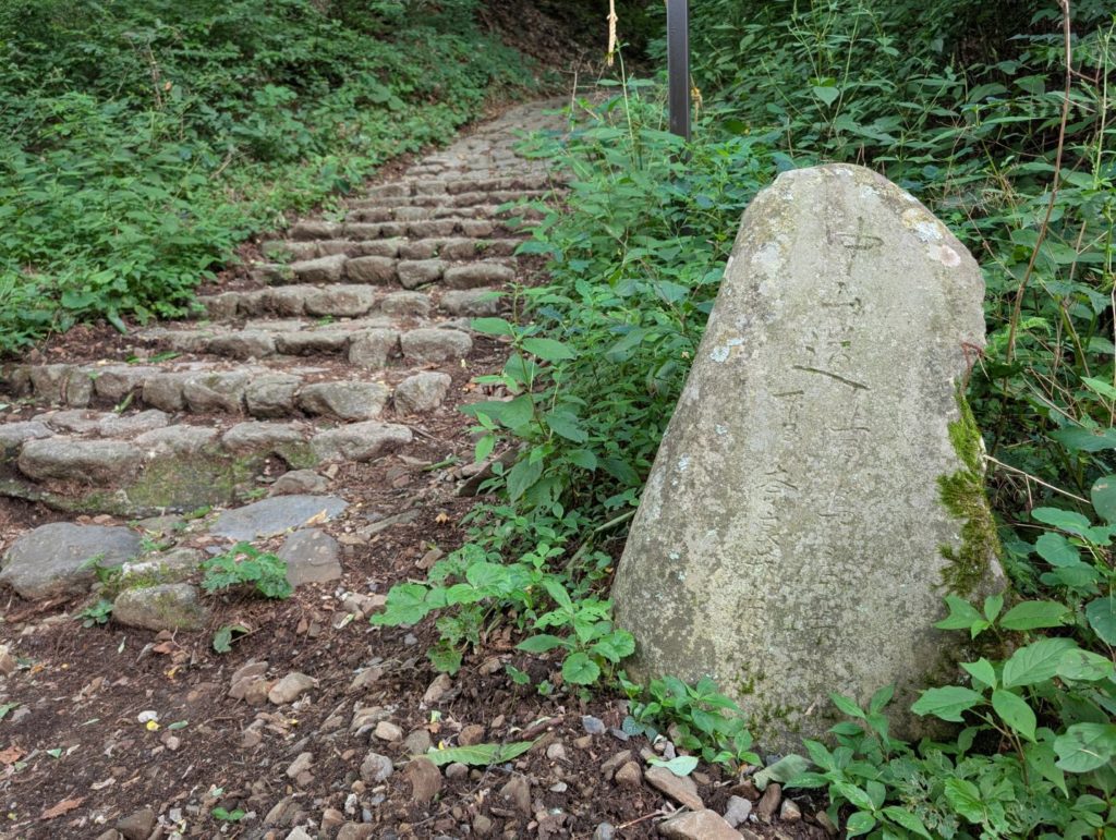 藪原宿から歩くことしばらく、ようやく木々に覆われた山道に入ります。石畳の道が続いていて、街道の歴史を感じます。入口にあった看板には、熊が出ると書いてあってちょっとおっかなビックリ。街道を歩くだけという気持ちだったので、熊鈴は持ち歩いてなかったんですよね…
