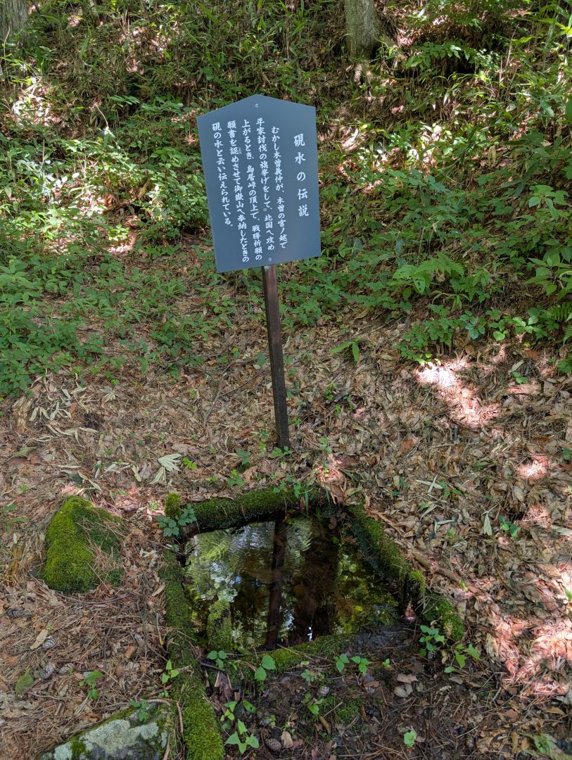 御嶽神社のそばにある御岳手洗水鉢、あまりの暑さに体力を奪われていたところで体を冷やすことができて生き返りました。暑い時期の低山登山やハイキングは本当に注意が必要…