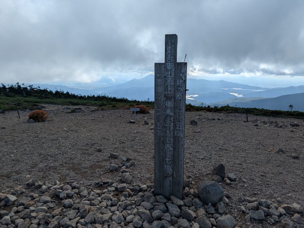 お盆を被せたような緩やかな山容をしている東吾妻山、時間が気になり少々急ぎながらの登りでしたが、比較的緩やかな登りで標高差も少なく、安達太良山とのダブルヘッダーではありましたが、無理せずに登ることができました。