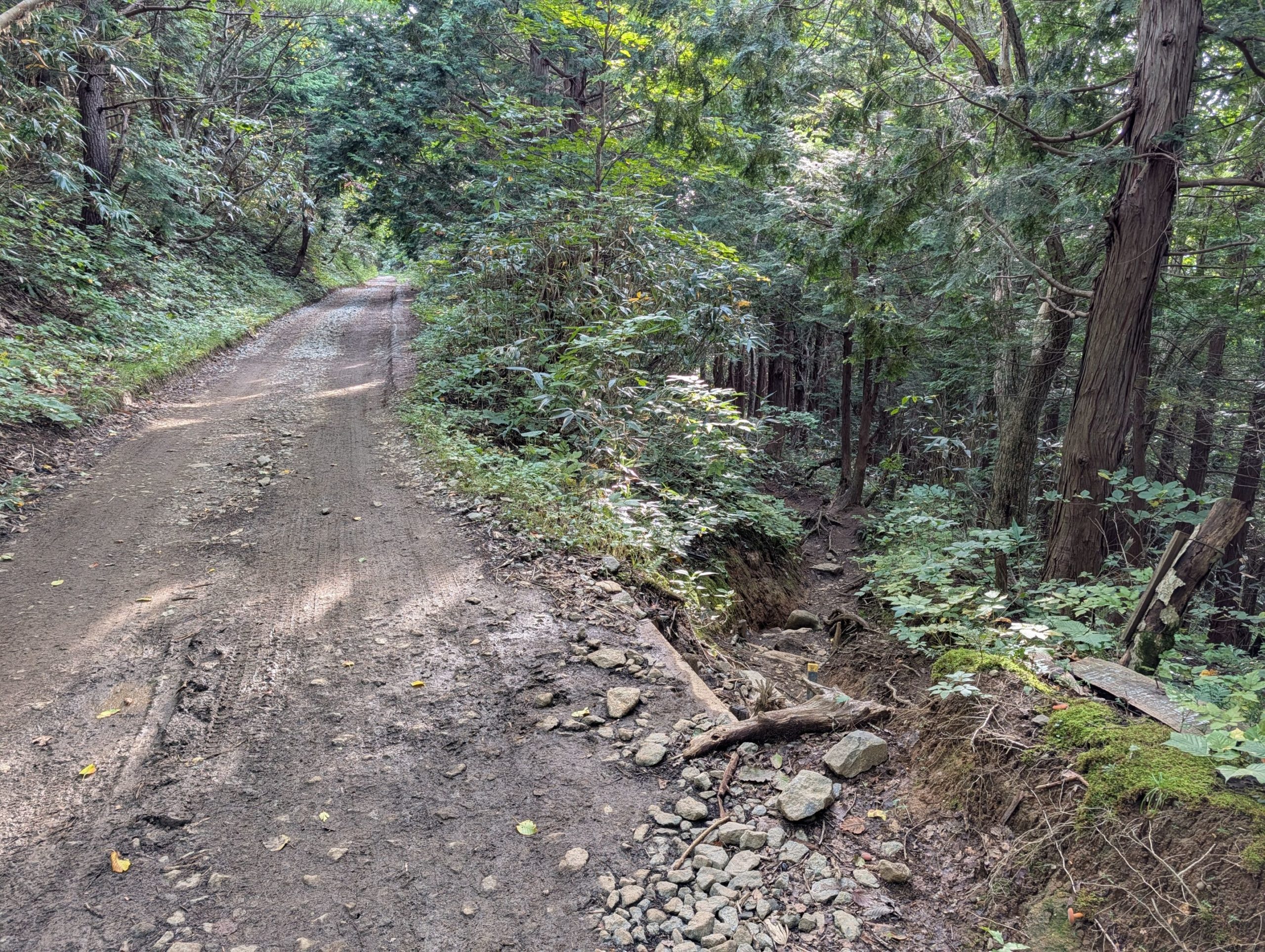 勢至平までは、直線的に高度を稼いでいく登山道(旧道)と車も通ることができる馬車道が並走しているのですが、登山道の方は泥濘も多くて歩きづらかったので、この日は距離は長いけれど整備されて歩きやすい馬車道の方で楽をさせてもらいました。