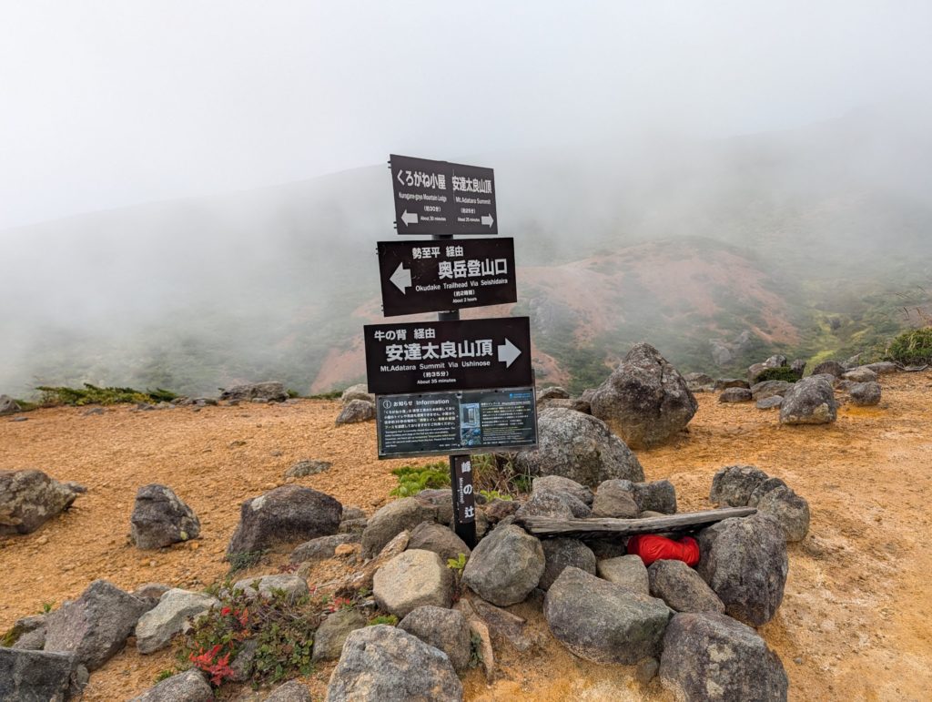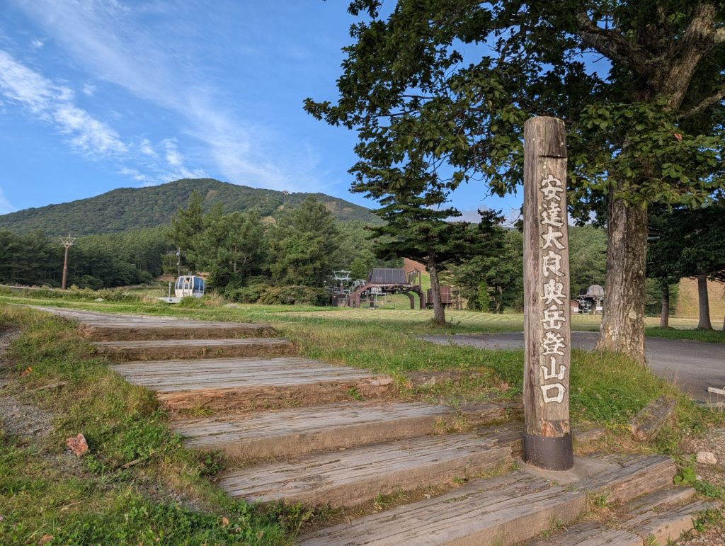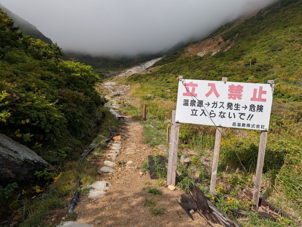 評価も良さそうでとても楽しみにしていた くろがね小屋の温泉…2023年に老朽化のために閉館して現在も建て替え工事中でした…なんで見落としたんだろう。そして、そのくろがね小屋のすぐそばにあった看板には「岳温泉」の文字。登山口に向かう麓で岳温泉街を見かけたけど、その源泉がこの辺りということのようなので、下山後に立ち寄ってみたいなと。