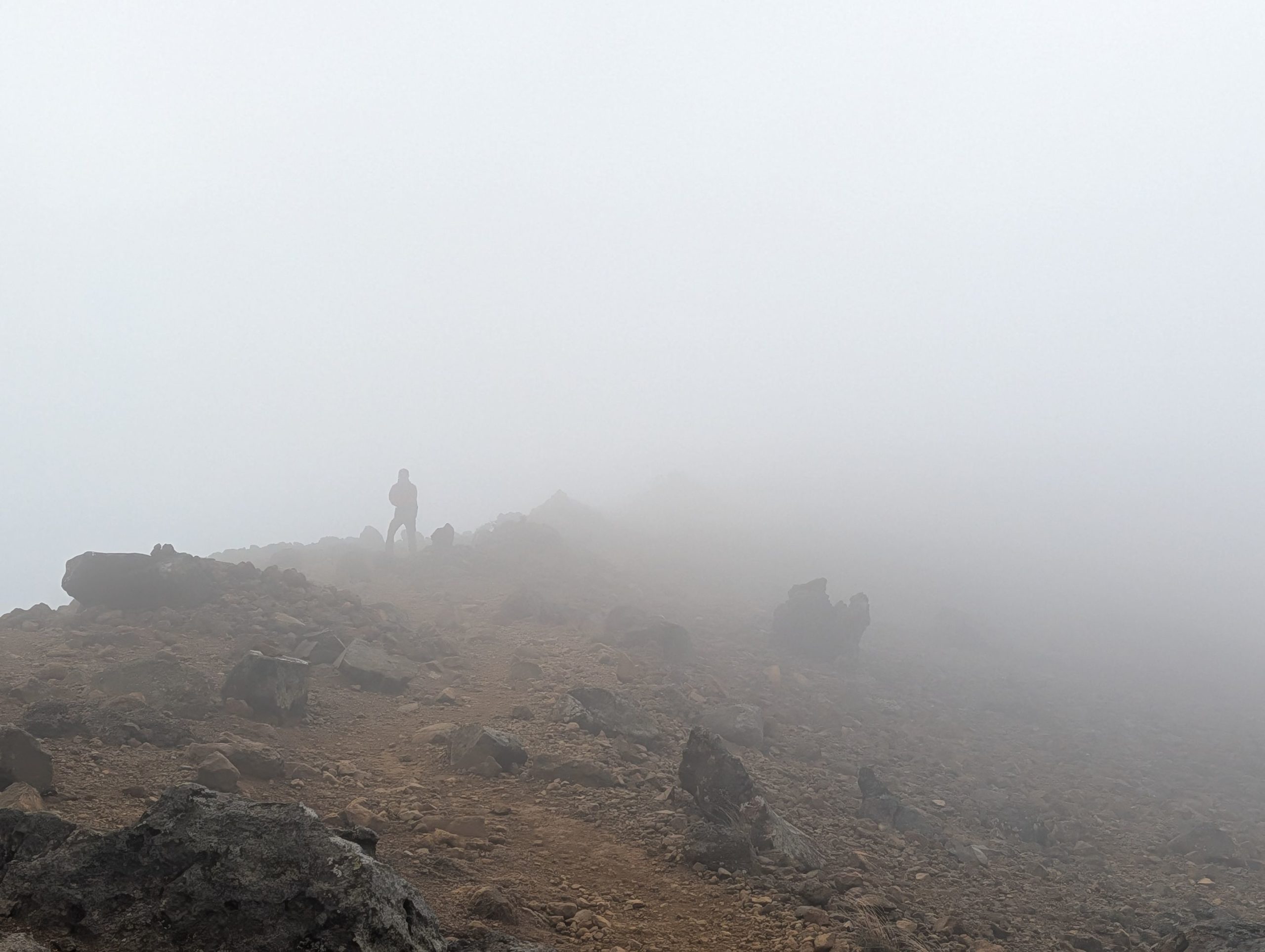 蜂の辻のあたりでは、下から吹き上げてくる猛烈な風と靄で視界が効かず一気に寒くなり、動きづらい状態に。引き上げるべきか悩むくらいの状態にもなったのですが、少し待っていると視界も開けて穏やかな感じに。