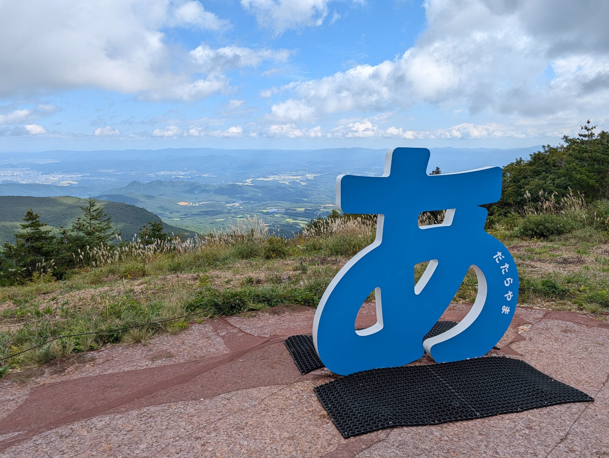 早朝から登山していたこともあって、山頂からの下山時には運転を開始したロープウェイを使って山頂に登ってくる多くの人たちとすれ違うのに一苦労…むしろ登りよりも下りで疲れてしまいました。ロープウェイ山頂駅の近くには薬師岳山頂があって、ここからも中々良い眺めが楽しめます。