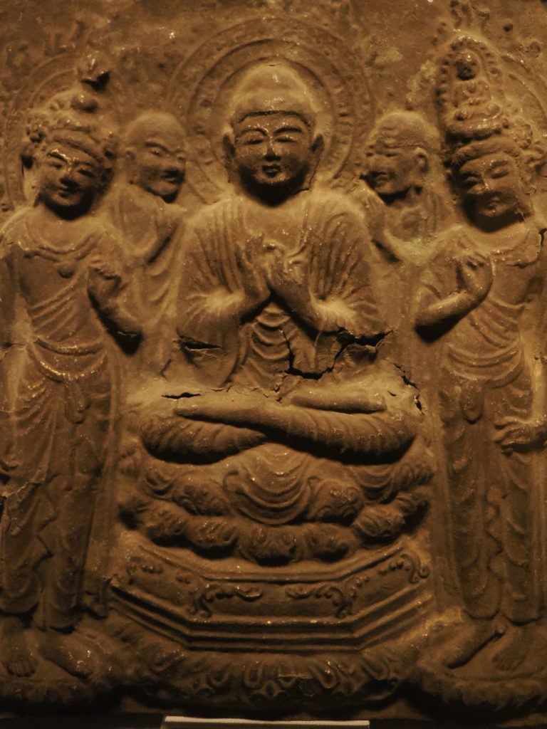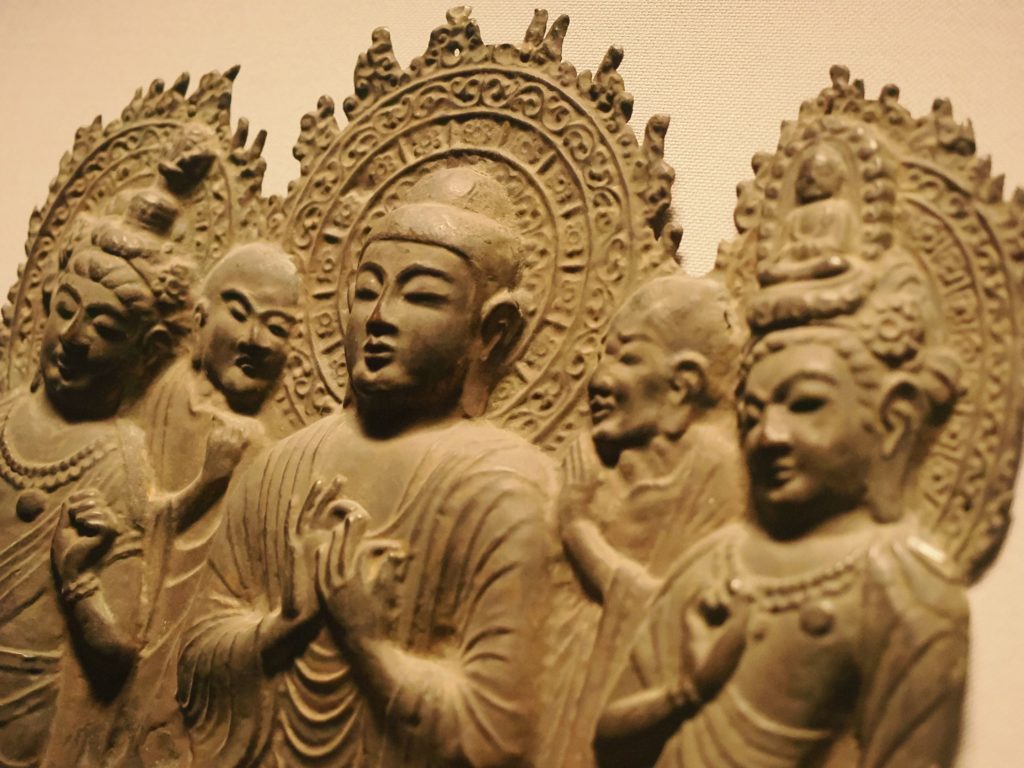 こちらは押出仏と言われるもので、型にのせた銅板をたたいて形を映し出した薄い仏さまの像。非常に精巧にできていて当時の技術力の高さに驚かされます。以下にその工程が示されていますが、この工程からこれだけ精巧なものが作れるとは信じがたいです。