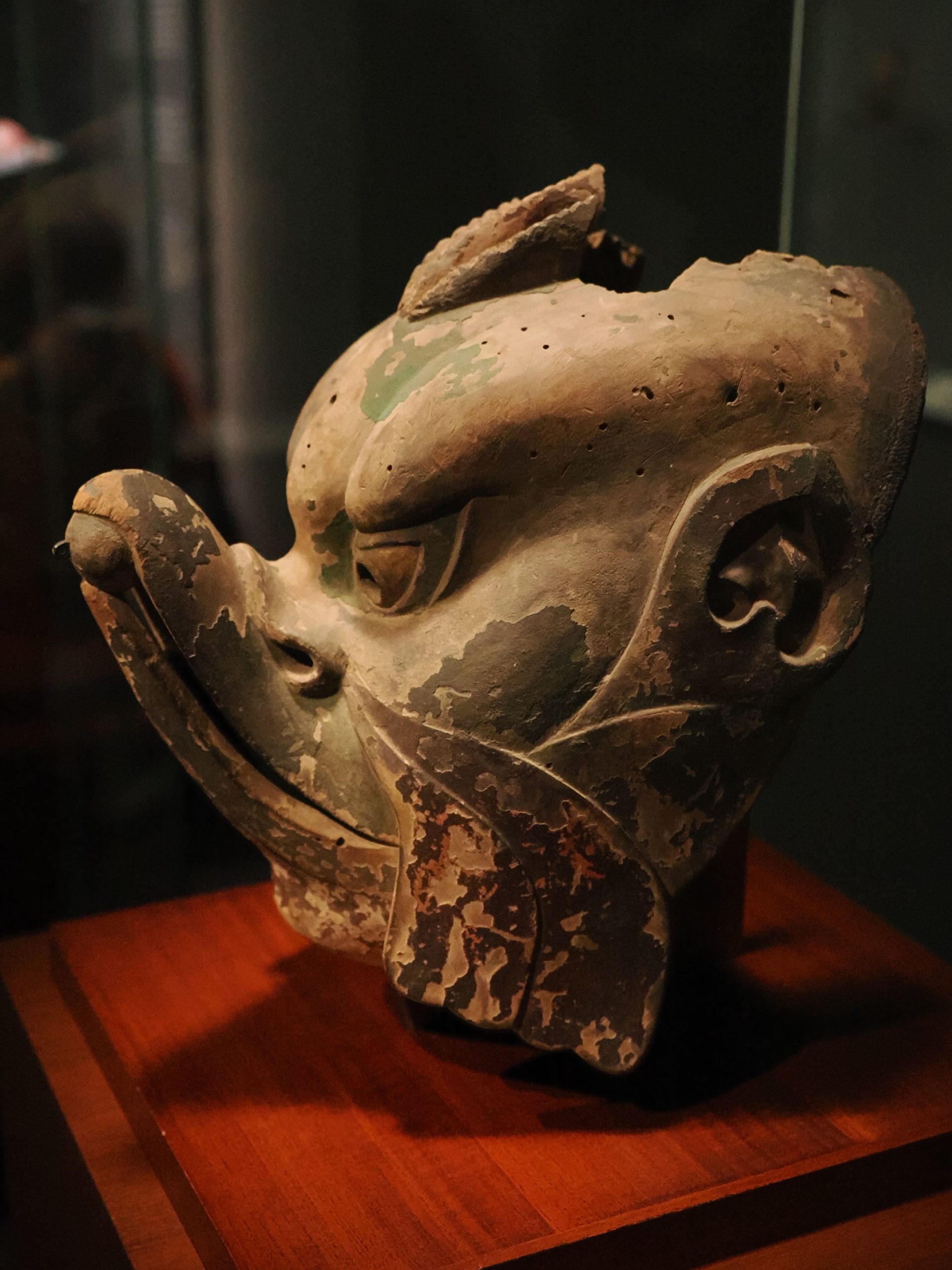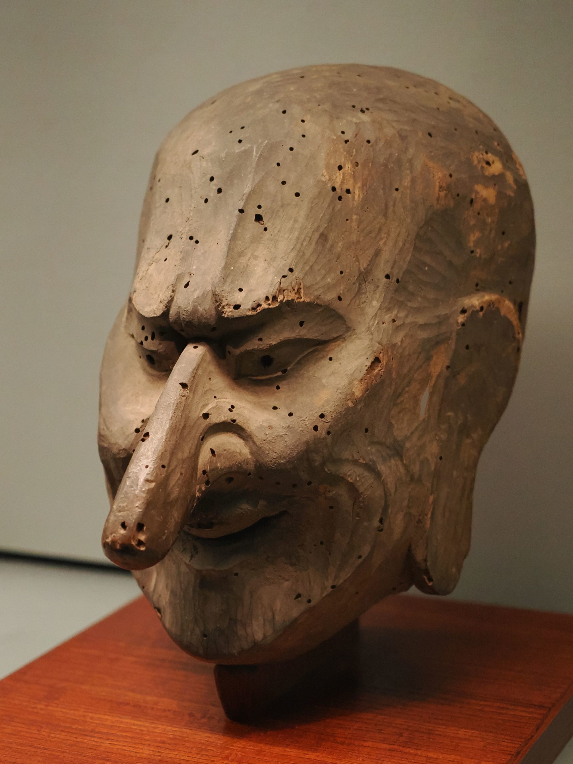 伎楽は、元々は仏教音楽を指す言葉で、大陸からもたらされたもの。日本では寺院で上演された仮面をつけて行う劇を意味しているのだそう。奈良時代に聖武天皇が東大寺などの寺院に伎楽面を多数納めたことから各地に普及したのだとか。国宝に指定されたものは、法隆寺・東大寺¥・正倉院に伝えられた200面のうち、飛鳥時代の仮面を含むものが法隆寺伝来のもののみで、それら現存する最古の伎楽面が今回国宝に指定されました。