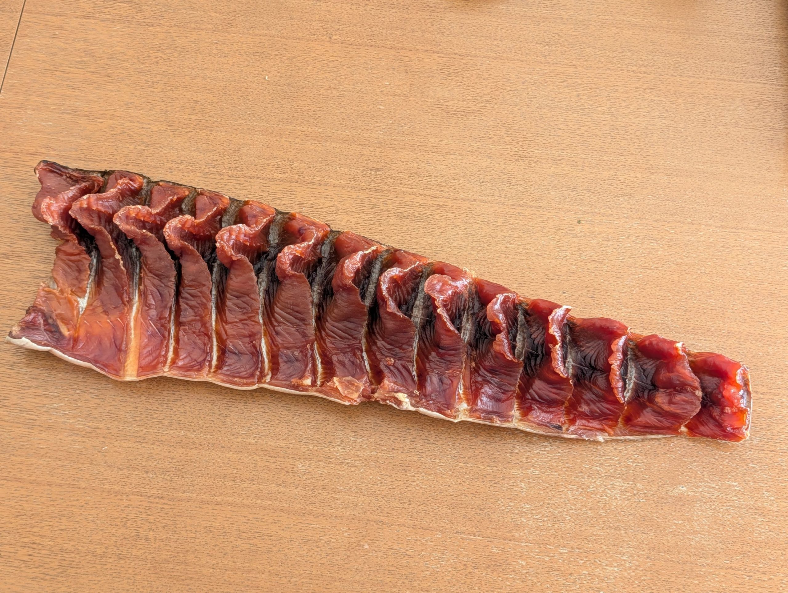 それがここ 1-2年は鮭の不漁もあって店頭から消えてしまい、ネットでも探したのですが残念ながら全て売り切れという状態が続いていました。似たような鮭の半身の燻製の冷凍モノを見つけて購入したりもしたのですが、ロッキーサーモンは燻製でありながら、旨味が凝縮した油がにじみ出てくる独特な柔らかさと旨さがあって、正直比べ物になりませんでした。