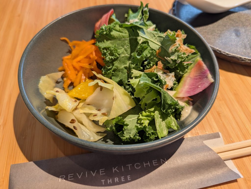 日比谷にある東京宝塚劇場で宝塚を見るってことで、日比谷で久しぶりのランチ。この日はすべて奥さんにお任せってことで向かったのが 東京ミッドタウン日比谷 にある REVIVE KITCHEN THREE HIBIYA。ビーガンやグルテンフリーの方にも対応可能な野菜料理のお店。