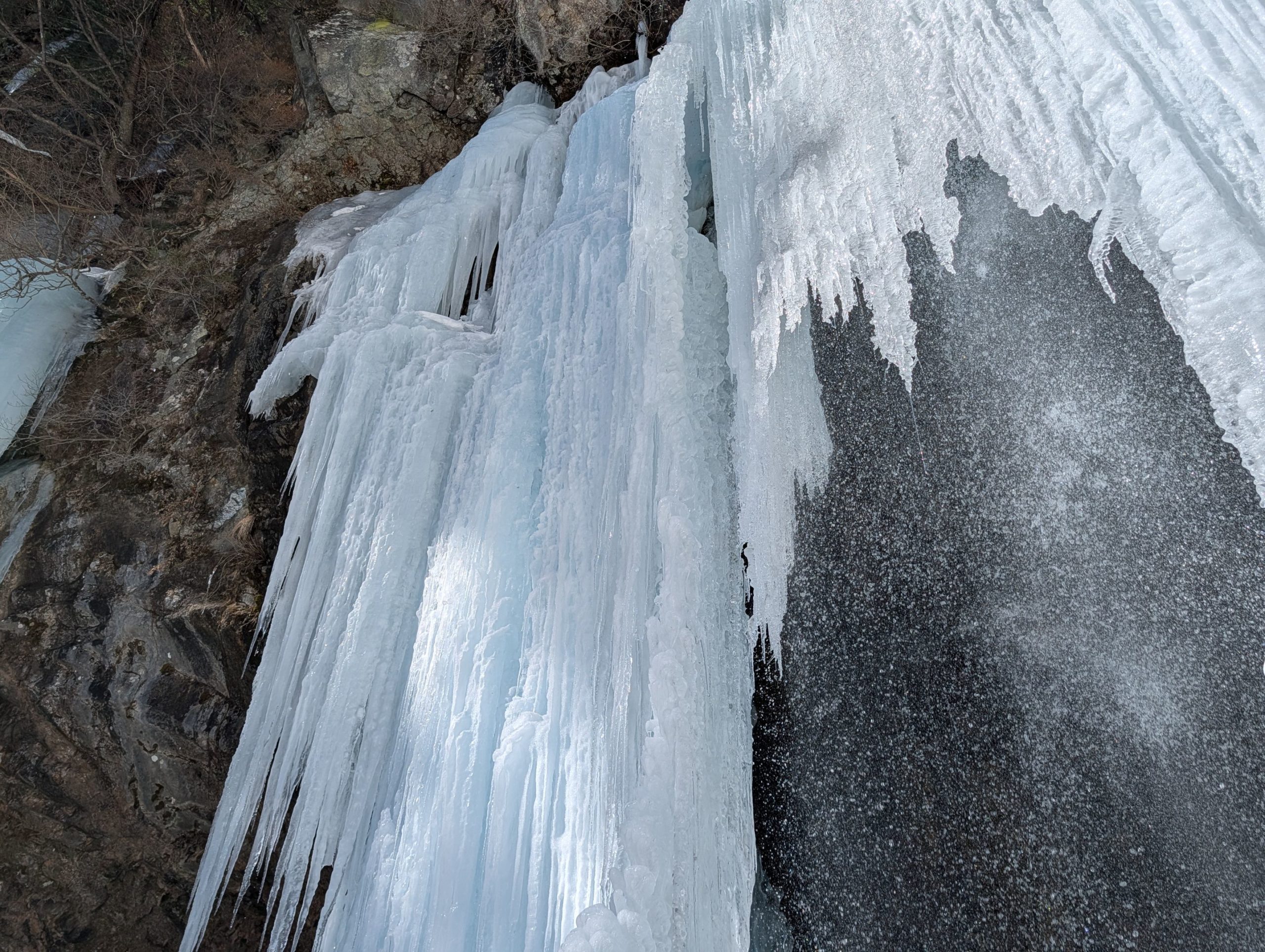 見れば見るほど、どうやったらこんな形で滝が凍るのだろうと思ってしまいます。そして近づくと、見上げる大きさと迫りくるような氷の塊にちょっと恐怖感もあります。