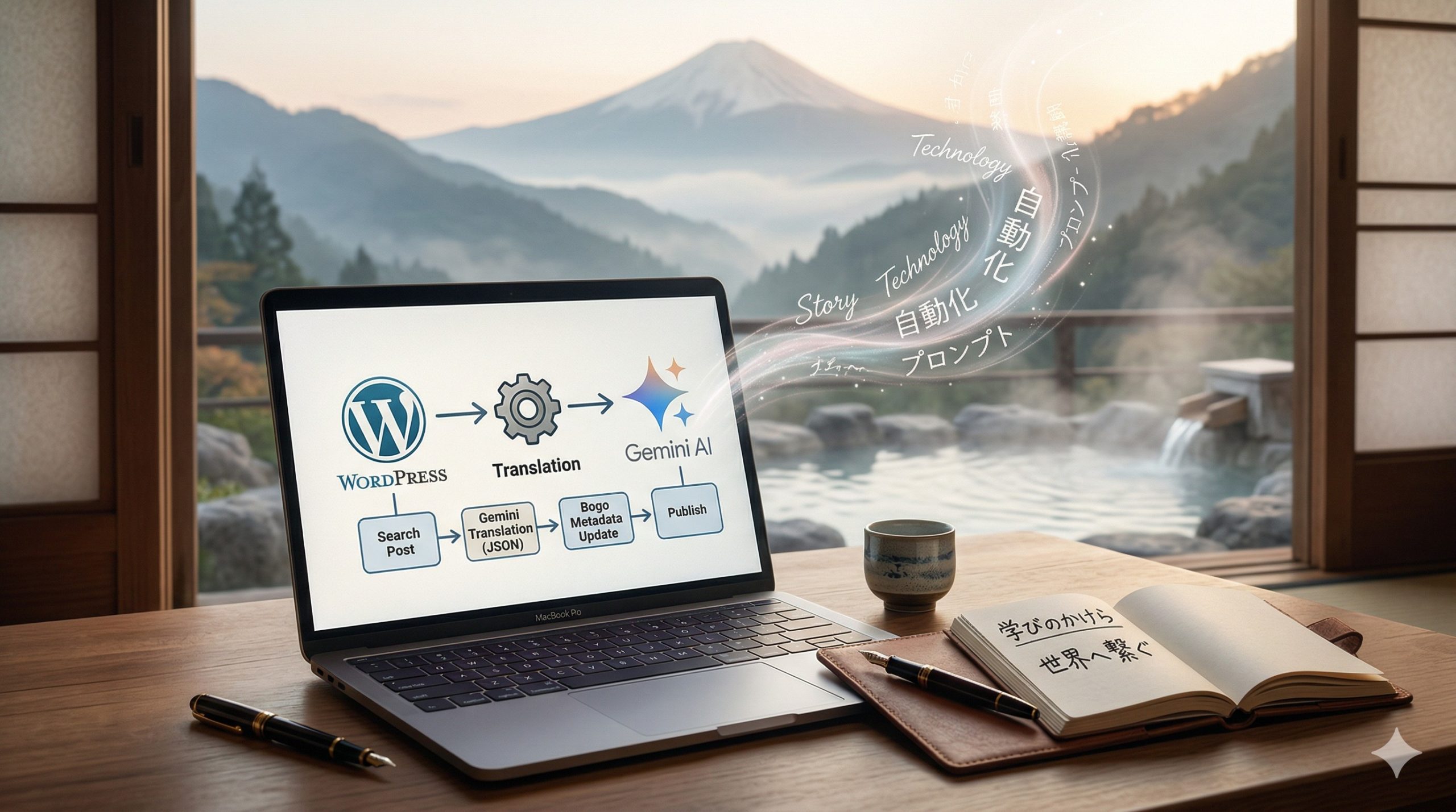 「学びのかけら」と「温泉でリラックス」ではそれぞれ英語版も用意しています。わりと最近まで自分で英訳していたのですが、AI による翻訳の精度がめちゃくちゃ上がったのと、プロンプトを工夫することで翻訳の仕方というか雰囲気みたいなものも、ある程度反映させられることがわかってきたので、自動化することにしました。