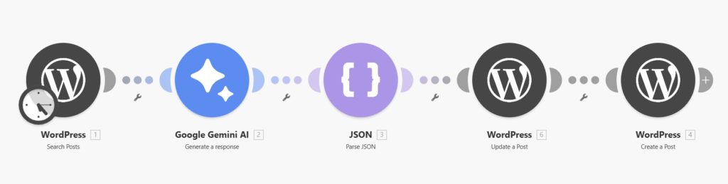 IFTTT 同様、Make.com も事前に定義されたモジュールを組み合わせることで、かなり簡単にフローを定義することができます。フローはいくつか作ってあるのですが、良く使っているフローは以下のような感じです。