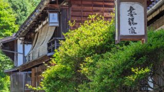 新緑の美しい恵那山に登ったのですが、登山中の眺望がほとんど無かっただけでなく、山頂含めて木々に覆われていたこともあって、登山中に恵那山の山頂・山容を見ることも無かったので、どんな山を登ったのかが良く分からなくてちょっと消化不良。で、もしかして近くの妻籠宿や馬籠宿から恵那山の全体が見えたりするんじゃないかと、ちょっと妻籠宿に寄り道。