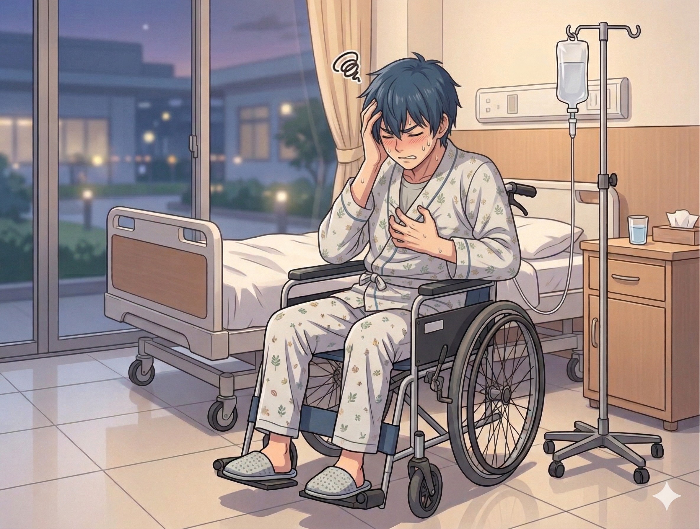However, about a week ago during a family memorial service, I felt a distinct, stronger dizziness that was different from the usual. I felt uneasy about the dinner following the service but decided to attend anyway, making sure to avoid alcohol and eat very little. The venue wasn’t a private room, and the sound of children crying at other tables started to get to me. I felt sick and went outside for some fresh air, but I didn’t recover. I ended up leaving early to head home. On the train, I felt terrible again and vomited in the station restroom. I could barely walk straight, and by the time I struggled back home, I couldn’t leave the bathroom. After vomiting dozens of times, my family came home and ended up calling an ambulance for me.