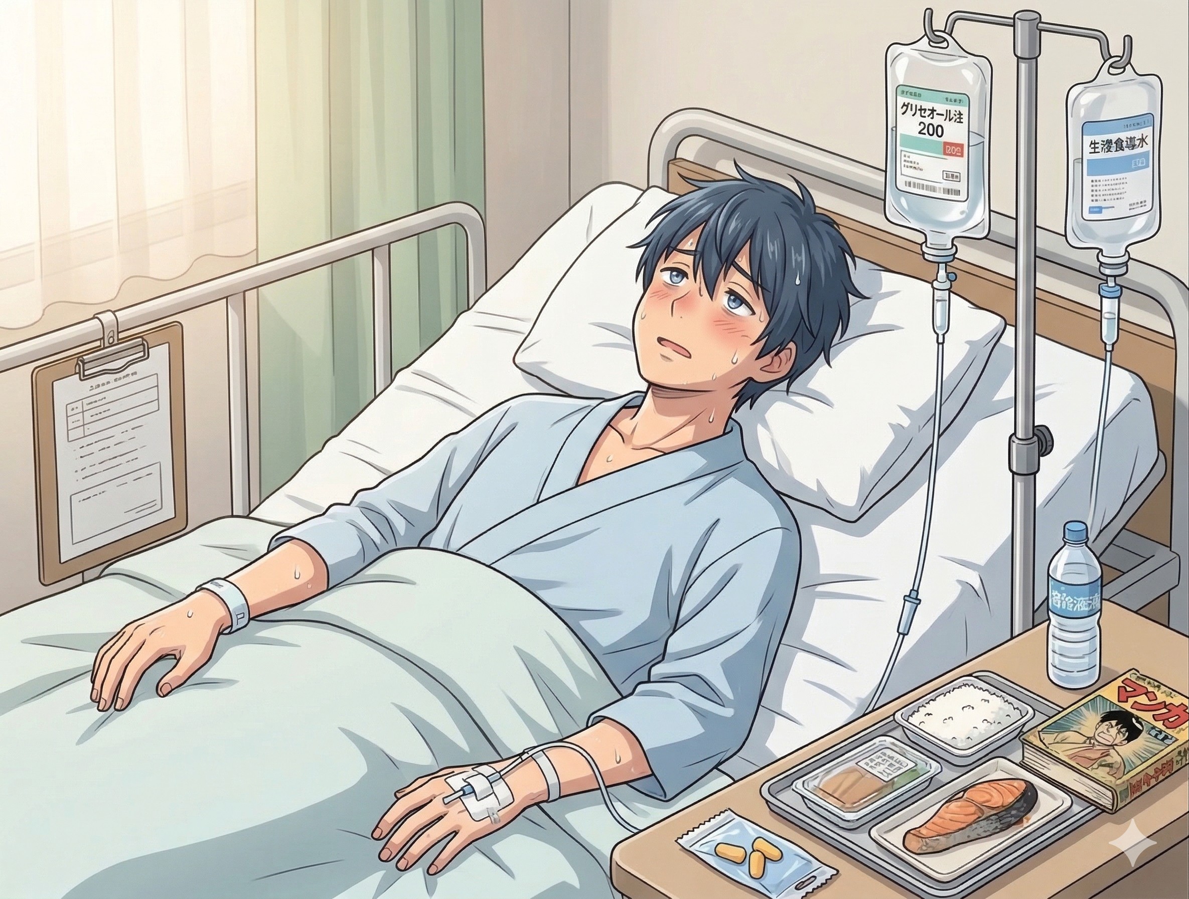 I don’t know all the details, but it seems Meniere’s is affected by fluid buildup in the inner ear. The test checks if hearing improves after removing that fluid with a diuretic via an IV drip. Specifically, they administered something called Glyceol 200 through a 30-minute IV, then re-tested my hearing 30 minutes after that.